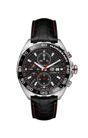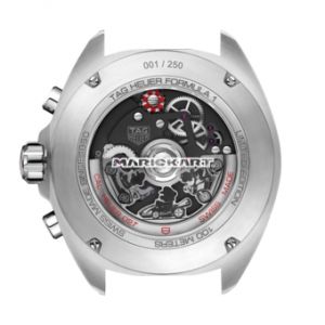 Lançado pelo automático Calibre 16 movement, o TAG Heuer Formula 1 X Mario Kart Limited Edition (cronógrafo) é limitado a 3000 peças. Foi imaginado em uma caixa de aço de 44-mm com referências à mundialmente famosa série de jogos de corrida: o logotipo Mario Kart está inscrito no aro taquímetro de cerâmica preta polida com Super-LumiNova®, o botão de 2 horas e a coroa são circulados com acabamento vermelho icônica, o símbolo M de Mario está gravado na coroa e o logotipo de Mario Kart está gravado no fundo aparafusado dedicado junto com o contorno dele em um carro de corrida.