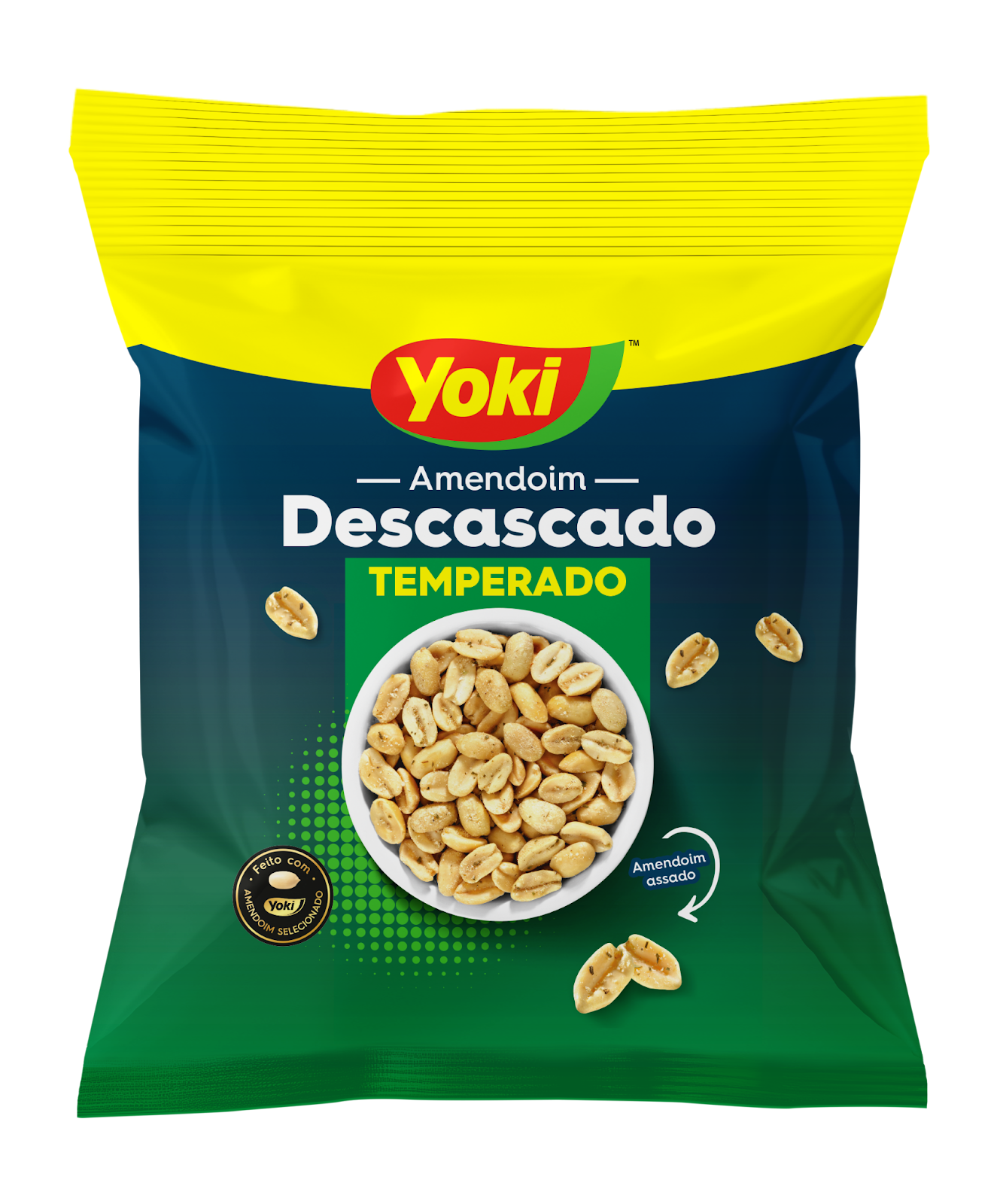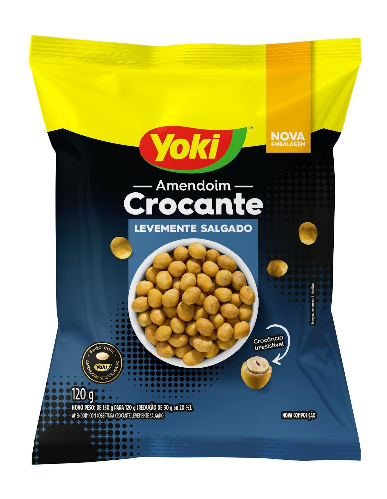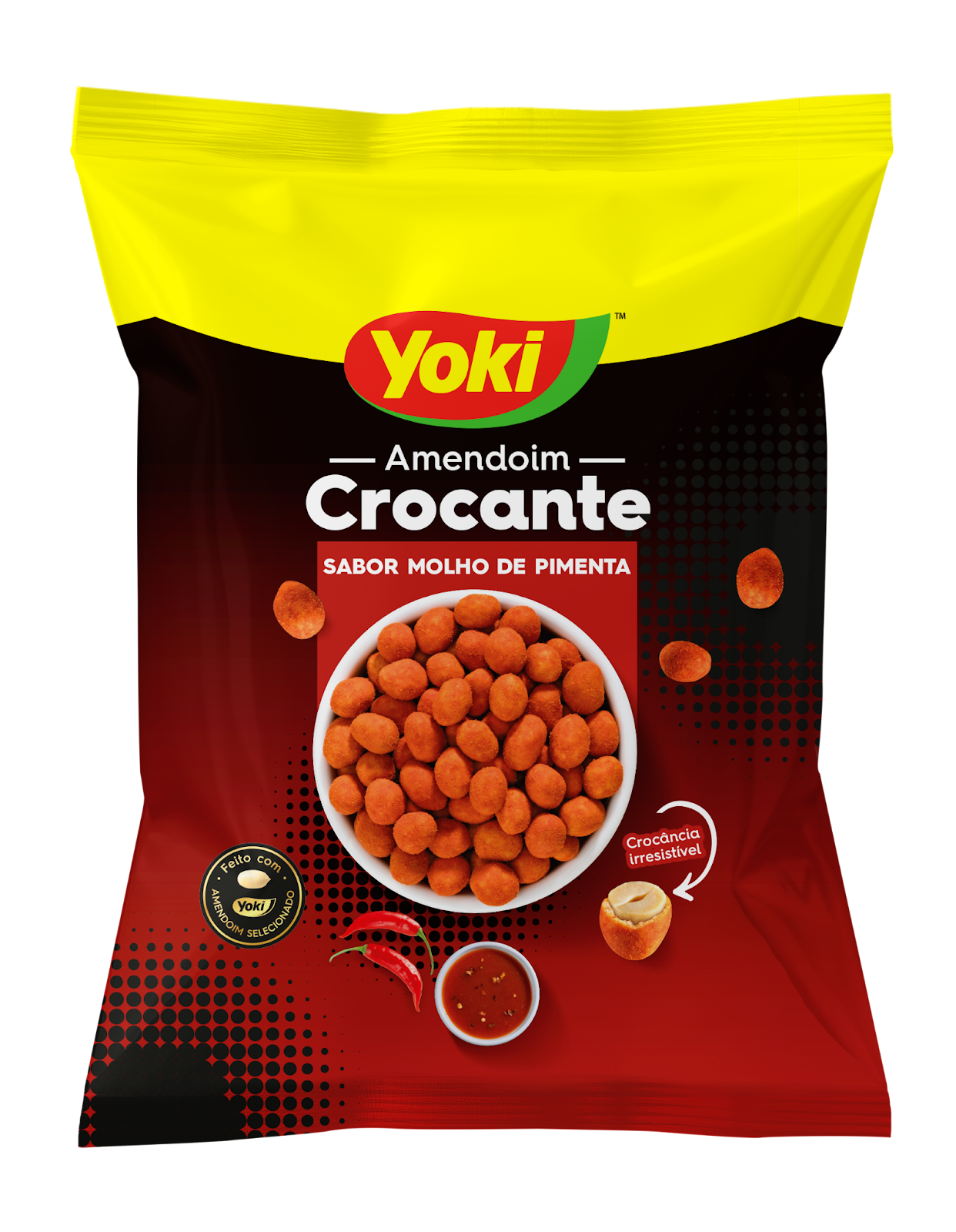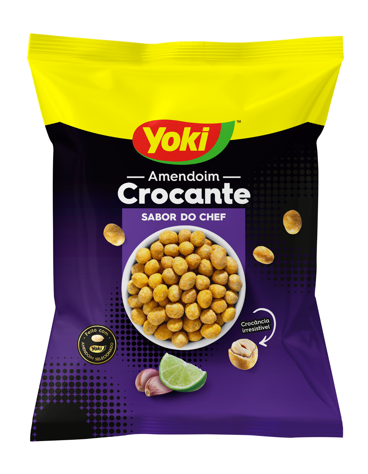 As embalagens da linha de snacks da Yoki foram recentemente reformuladas para valorizar os produtos. O selo “Amendoim Selecionado” destaca a qualidade e o cuidado na escolha do ingrediente, garantindo ao consumidor um produto saboroso e confiável. O novo design reforça o sabor e os diferenciais para o consumidor.